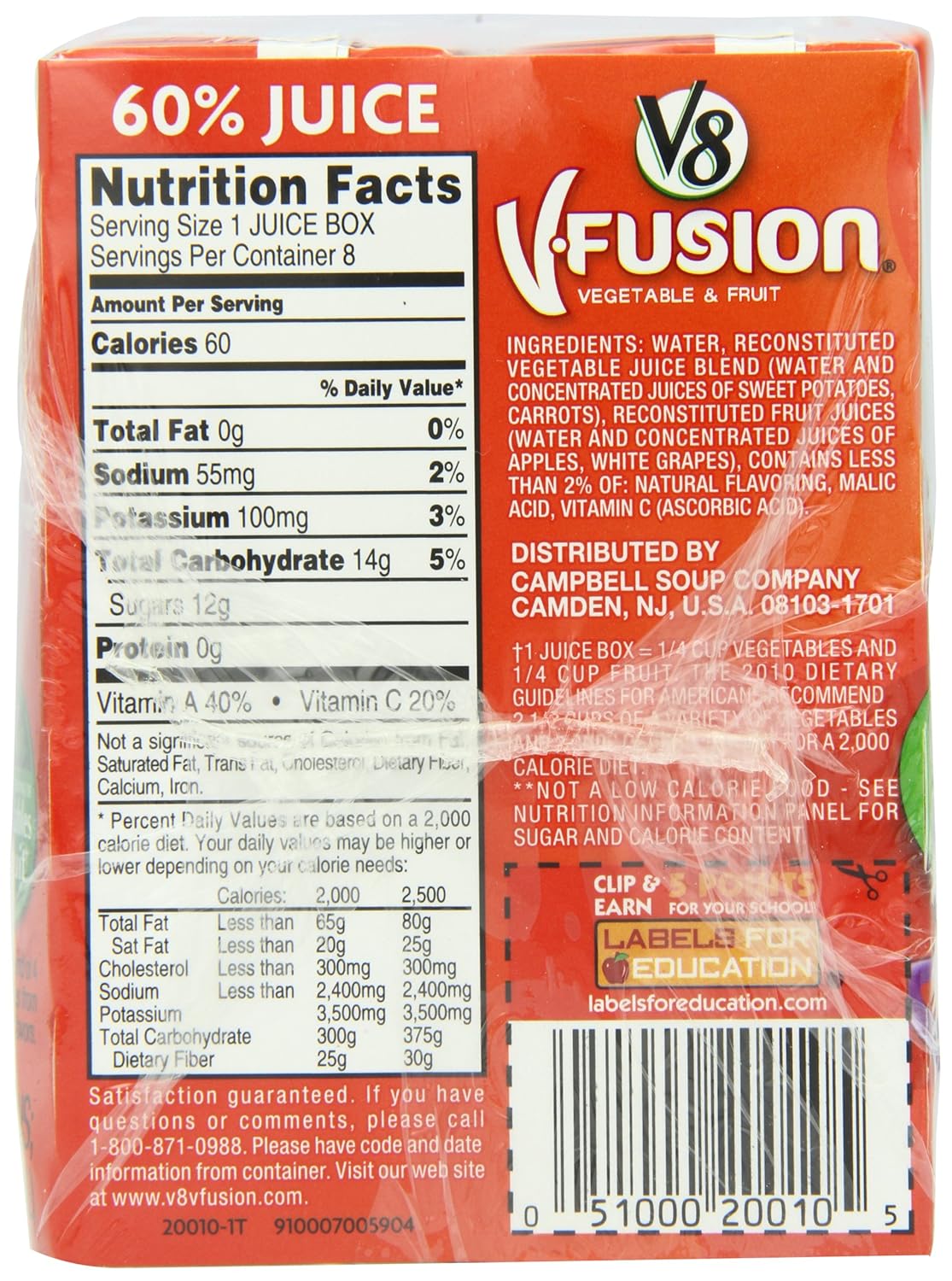 V8 label nutrition
