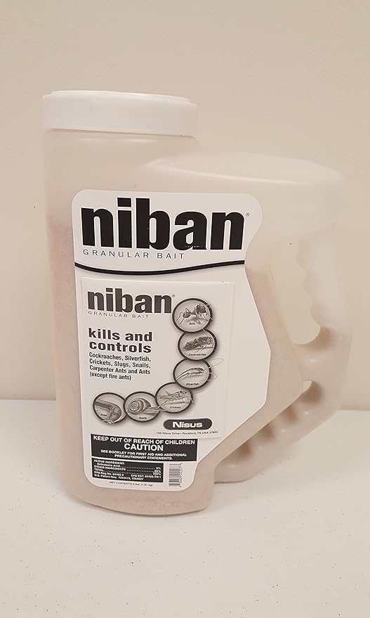 Niban® - Nisus Corp NIBAN® Granular Bait is a weatherized granular borate bait used outdoors or indoors to kill and control cockroaches, ants, silverfish, crickets, carpenter ants, earwigs, slugs and snails. Niban is attractive to target species but will not harm non-target species like bees and butterflies.