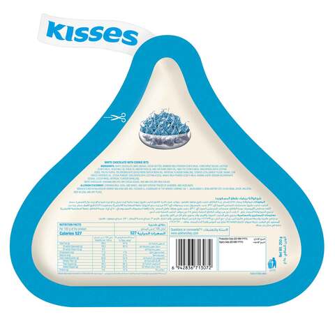 HERSHEY'S KISSES COOKIES 'N' CREME Candy, 10 oz pack Nutrition Facts Servings Per Container about 10 Serving size 7 pieces Amount per serving Calories 150 % Daily Value* Total Fat 8g 10% Saturated Fat 5g 24% Trans Fat 0g Cholesterol 0mg 0% Sodium 70mg 3% Total Carbohydrates 19g 7% Dietary Fiber 0g 0% Total Sugars 14g Includes 11g Added Sugar 23% Protein 2g Vitamin D 0.4mcg 2% Calcium 60.6mg 4%