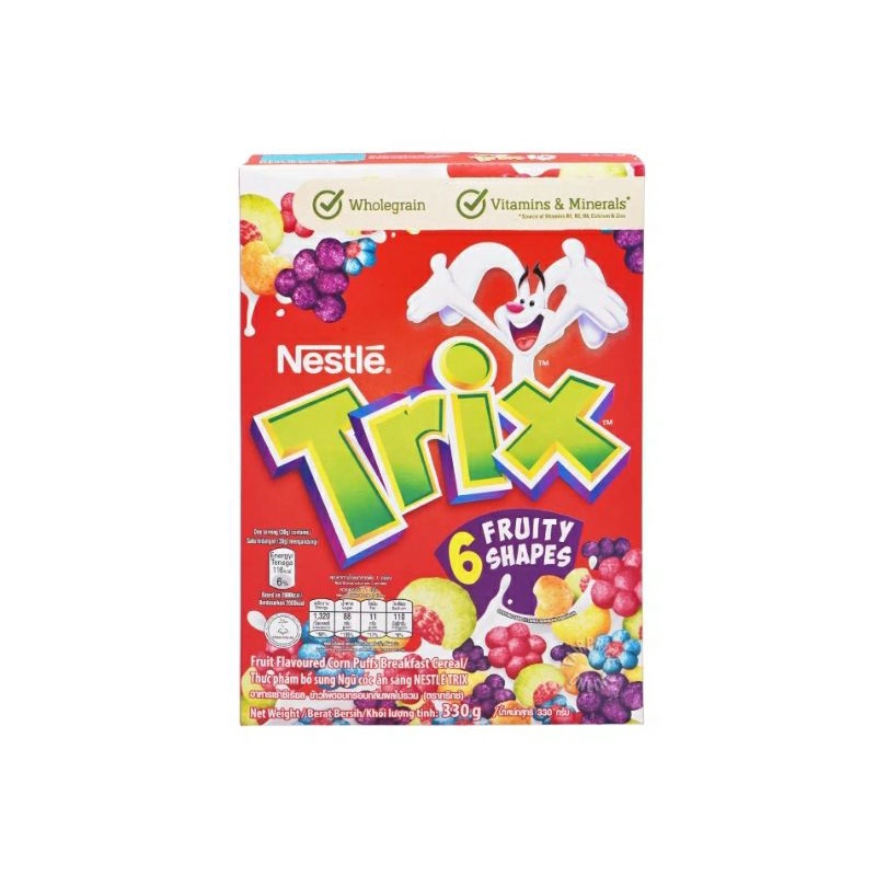 Cereal Trix® | Nestlé Cereals TRIX cereal is fun, fruity with 6 different Fruity shapes. Made with Wholegrain it is a source of calcium, zinc and B vitamins. Full of nutrition and fruity flavors, what a fun way to start the day! ... • Look for food labels where the word 'whole' appears in front of the name of the grain, like "whole wheat" or "wholemeal bread ...