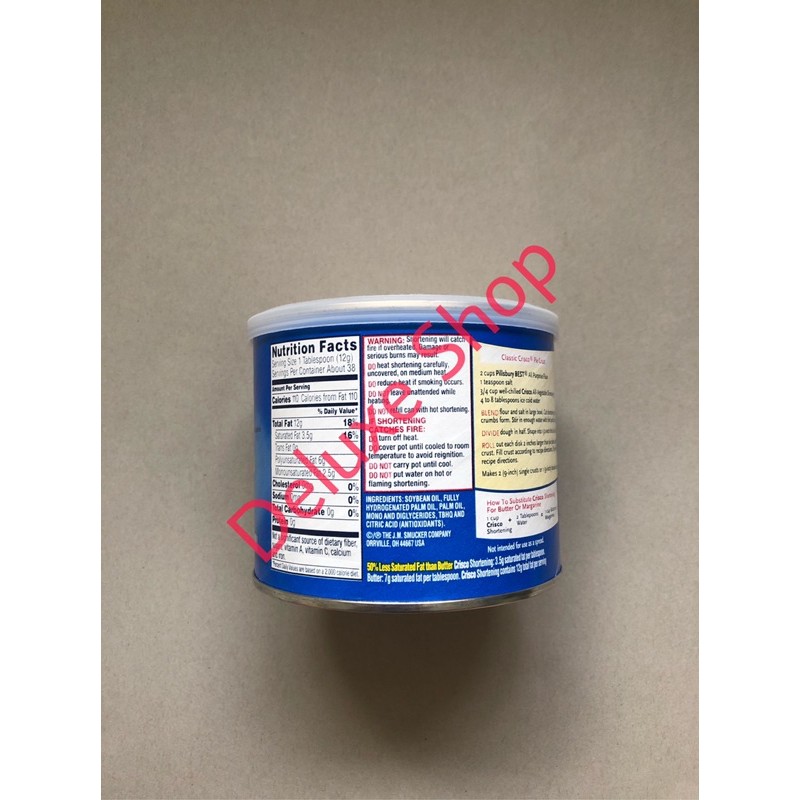 Crisco Shortening Nutrition Information | Healthfully A single serving of regular or butter flavored Crisco shortening contains 12 g fat 1. This is 18 percent of the recommended daily value of fat for a 2,000-calorie diet. The shortening contains 3 g saturated fat, 6 g polyunsaturated fat and 2.5 g monounsaturated fat. Crisco shortening does not contain trans fat or cholesterol 1. Crisco Pure Vegetable Oil Allergy and Ingredient Information Crisco Pure Vegetable Oil Cholesterol free vegetable oilKosher, UPC Code 051500253625 Manufactured by J.M. Smucker Co. Allergen Inside Helping You Shop & Eat Safer. ... THIS INGREDIENTS LABEL CONTAINS: 1 TOP 14 allergen. Crisco Pure Vegetable Oil. Made By: Crisco. SKU/UPC CODE: # 051500253625. PRODUCT DESCRIPTION: Cholesterol free vegetable ... Pure Canola Oil - Crisco 1 Tbsp (14g) * The % Daily Value (DV) tells you how much a nutrient in a serving of food contributes to a daily diet. 2,000 calories a day is used for general nutrition advice. Ingredients Canola Oil. Product Information 0g Trans Fat Per Serving* Cholesterol Free*Canola Oil Is a Cholesterol Free Food With 14g Of Total Fat Per Serving Butter Flavor All-Vegetable Shortening - Crisco 50% Less Saturated Fat than Butter*Crisco Shortening: 3.5g saturated fat per tablespoon. Butter: 7g saturated fat per tablespoon. Crisco Shortening contains 12g total fat per serving. Excellent source of ALA Omega-3 fatty acid*Contains 710mg of ALA per serving, which is 44% of the 1.6g Daily Value for ALA.