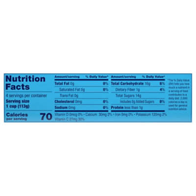 Dole Mandarin Oranges in 100% Fruit Juice Jar - H-E-B Sodium, 0mg ; Potassium, 29mg ; Calcium 2%, Iron 2% ; Calcium 2% ; Vitamin D · 2% ...