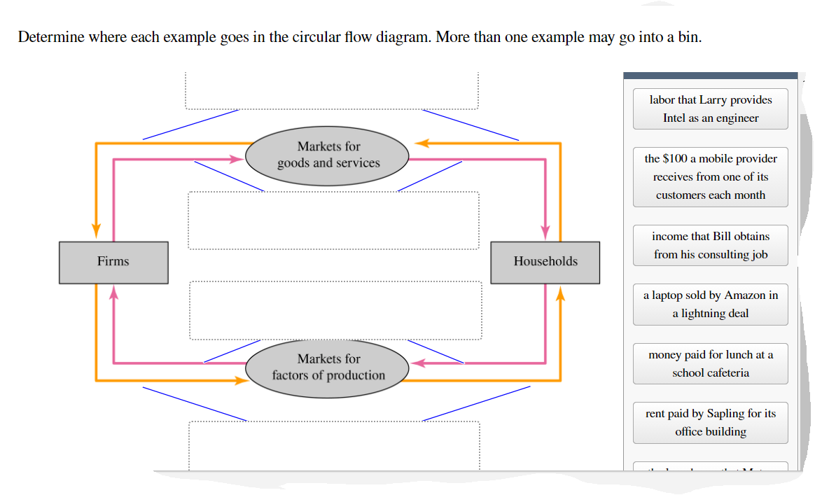 Circular Flow | Principles of Macroeconomics | | Course Hero The circular flow diagram pictures the economy as consisting of two groups — households and firms — that interact in two markets: the goods and services market in which firms sell and households buy and the labor market in which households sell labor to business firms or other employees. To better understand the economy and the NIPAs ...