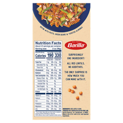 Amazon.com : Barilla Chickpea Rotini Pasta, 8.8 oz (Pack of ... PASTA MADE ENTIRELY FROM CHICKPEAS: Barilla Chickpea Pasta is made with just one simple ingredient, chickpea flour, and is packed with plant based protein and dietary fiber; Pair with tomato based pasta sauces, a fragrant pesto sauce or other pasta sauces ; CHICKPEA ROTINI PASTA: Contains 10, 8.8-ounce boxes of Barilla Chickpea Rotini pasta
