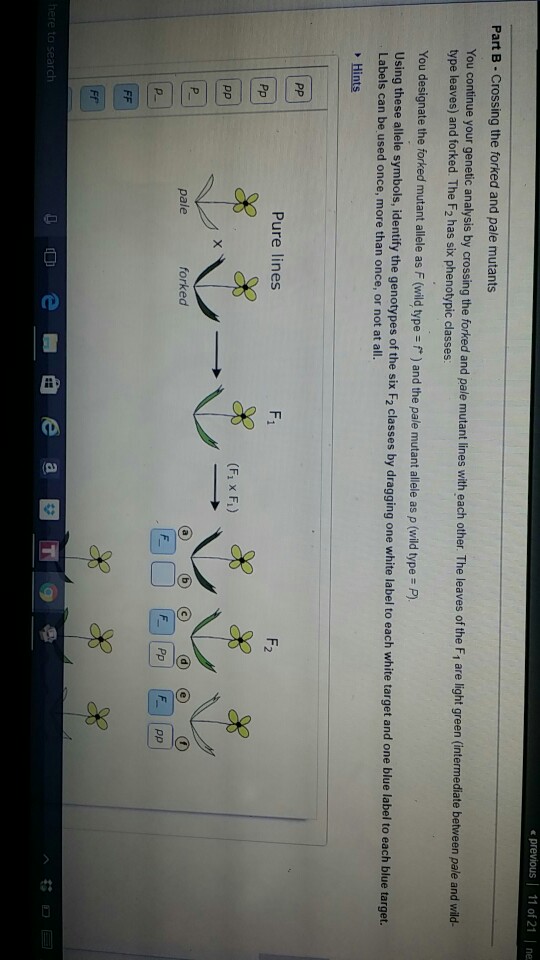 Crossing the forked and pale mutants. Part b crossing the forked and pale mutants the green - Course Hero You designate the forkedmutant allele as F(wild type =f+) and the pale mutant allele as p(wild type =P). 1. Consider the alleles for leaf color first. Drag the white labels to the white targets to identify the genotype of each F 2class. Remember that p(the pale mutant allele) and P(the wild-type allele) are incompletely dominant to each other. 2. Part B - Crossing the forked and pale mutants You | Chegg.com Part B - Crossing the forked and pale mutants You continue your genetic analysis by crossing the forked and pale mutant lines with each other. The leaves of the F1 are light green (intermediate between pale and wild-type leaves) and forked. The F2 has six phenotypic classes, as shown below. Crossing The Forked And Pale Mutants - Blogger Crossing the forked and pale mutants. You continue your genetic analysis by crossing the forked and pale mutant . They, along side skinny pale mutants, are the only kind of mutants found in the caves. A black guinea pig crossed with an albino guinea pig produced twelve black. Pale mutants stand tall, and move in a very human like manner. Part a consider pea plants with the genotypes ggtt - Course Hero Incomplete Dominance and Codominance You are studying leaf development in a member of the mustard family. You identify several mutants of interest in this plant and make pure (true-breeding) lines of each mutant for further study. Part A - Determining relationships between alleles You decide to conduct a genetic analysis of these mutant lines by crossing each with a pure wild-type line.