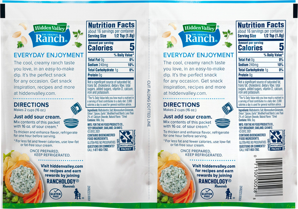 Ranch ingredients label