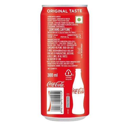 Calories in Coca-Cola Coca-Cola (Can) and Nutrition Facts - FatSecret Coca-Cola (Can) Nutrition Facts Serving Size 1 can (355 ml) Amount Per Serving Calories 140 % Daily Values* Total Fat 0.00g 0% Saturated Fat 0.000g 0% Trans Fat 0.000g Polyunsaturated Fat 0.000g Monounsaturated Fat 0.000g Cholesterol 0mg 0% Sodium 25mg 1% Total Carbohydrate 39.00g 14% Dietary Fiber 0.0g 0% Sugars 39.00g Protein 0.00g Vitamin D -