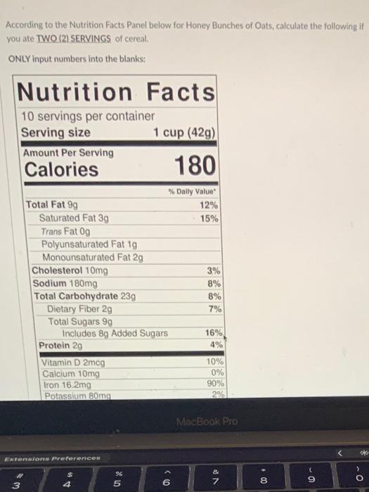 Honey bunches of oats nutrition facts label